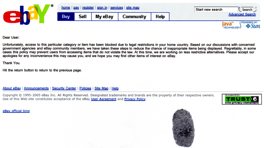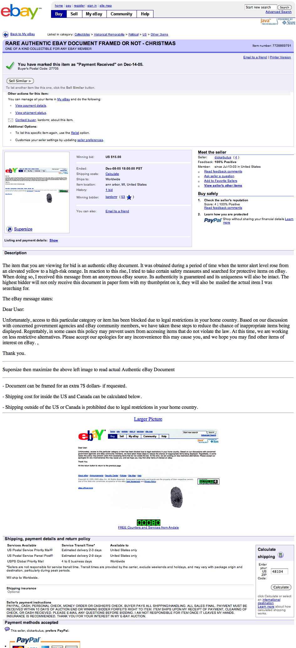 In Search of Safety Item, Ebay Security Message, Fingerprint, Ebay Auction, and ?Safety Item?, 2005